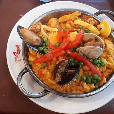 Un plato tradicional que justamente probé y lo encontre increible, es la "Paila Marina", servido en paila de greda con variados productos del mar frescos, inmersos en una sopa caliente que mezcla un sabor autentico en su preparación, ya que el paladar (lo digo a modo personal) siempre compara con otras instancias de prueba en otros Restaurantes y de verdad que la condimentación de esta Paila Marina en Donde Augusto, me pareció única, rica, contundente y no se parecía a ninguna antes que había probado, la recomiendo absolutamente.